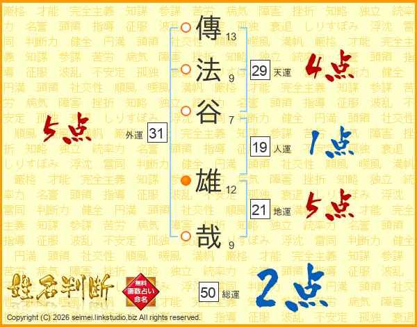 傳法谷雄哉さんの地運は21画の5点!