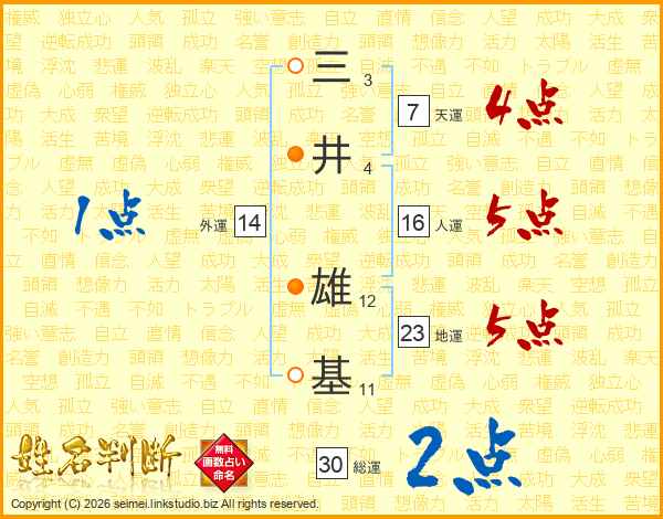三井雄基さんの外運は14画の1点!