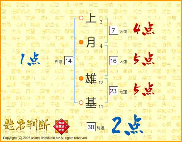 上月雄基さんの総運は30画の2点!
