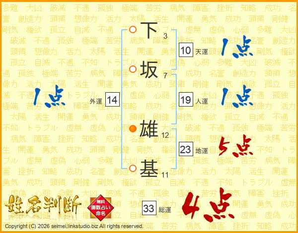 下坂雄基さんの総運は33画の4点!