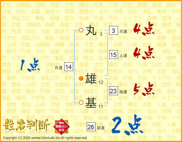 丸雄基さんの総運は26画の2点!