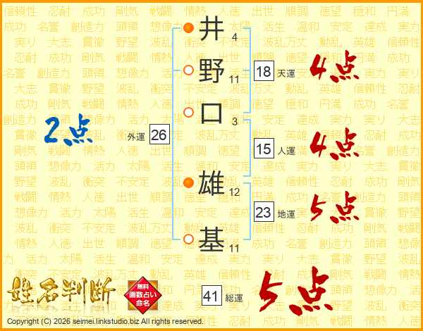 井(4画)野(11画)口(3画) 雄(12画)基(11画)