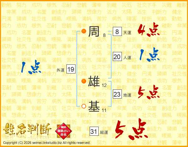 周雄基さんの総運は31画の5点!