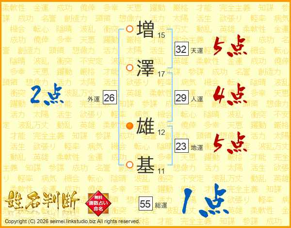 増(15画)澤(17画) 雄(12画)基(11画)