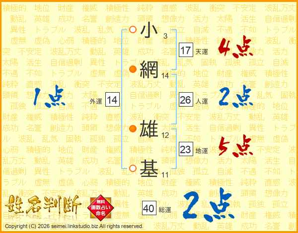 小網雄基さんの総運は40画の2点!