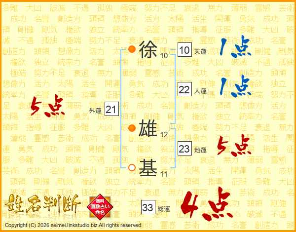 徐雄基さんの総運は33画の4点!