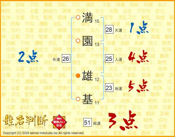 満園雄基さんの人運は25画の4点!