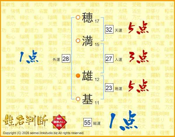 穂(17画)満(15画) 雄(12画)基(11画)
