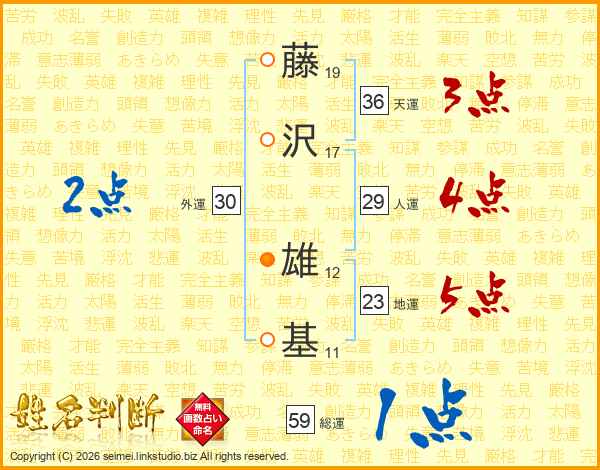 藤(19画)沢(17画) 雄(12画)基(11画)