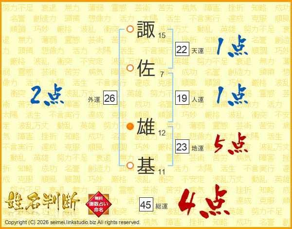 諏佐雄基さんの総運は45画の4点!