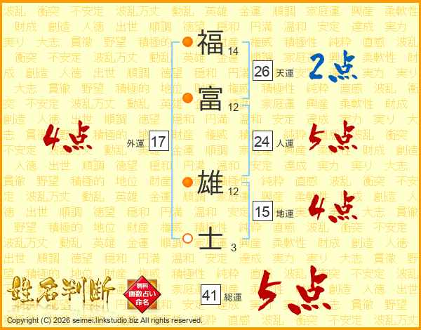 福富雄士さんの総運は41画の5点!