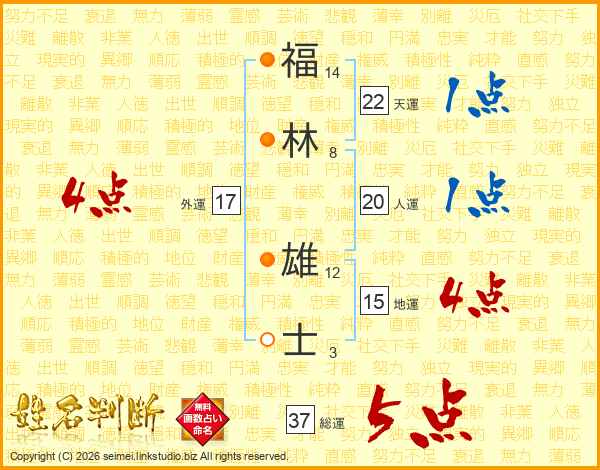 福林雄士さんの総運は37画の5点!