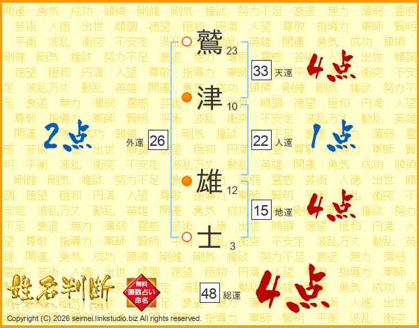 鷲津雄士さんの総運は48画の4点!