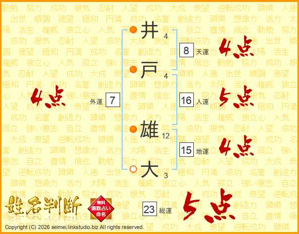 井戸雄大さんの総運は23画の5点!