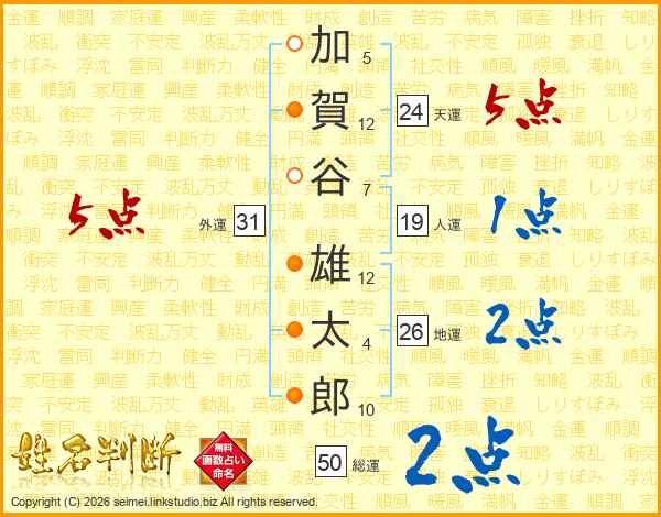 加賀谷雄太郎さんの地運は26画の2点!