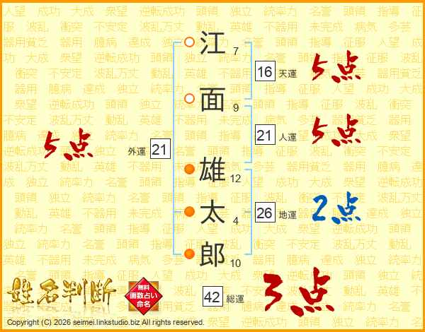 江面雄太郎さんの人運は21画の5点!