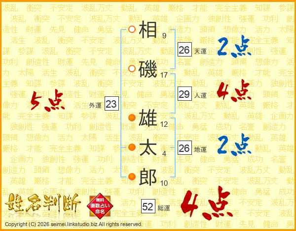 相磯雄太郎さんの総運は52画の4点!