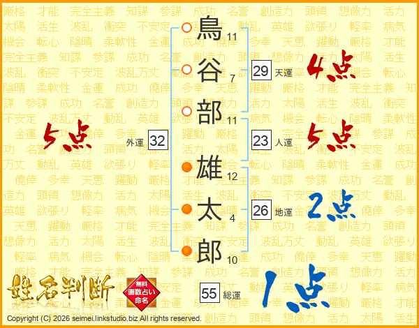 鳥谷部雄太郎さんの外運は32画の5点!