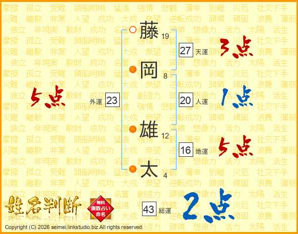 藤岡雄太さんの天運は27画の3点!