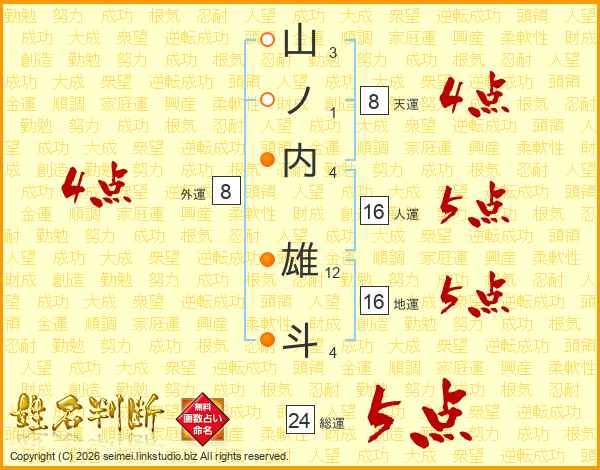 山ノ内雄斗さんの総運は24画の5点!
