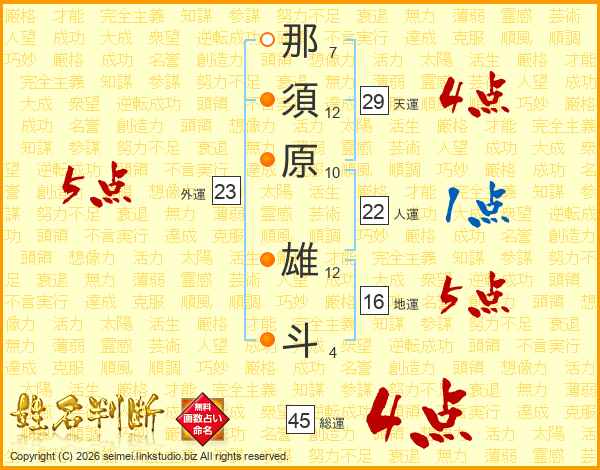 那須原雄斗さんの総運は45画の4点!