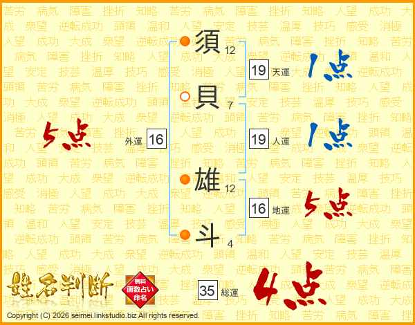 須(12画)貝(7画) 雄(12画)斗(4画)