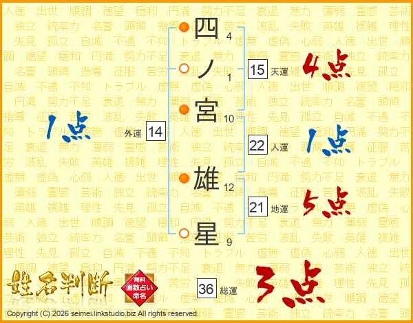 四ノ宮雄星さんの総運は36画の3点!