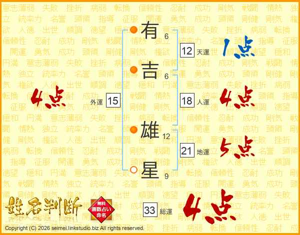 有吉雄星さんの総運は33画の4点!