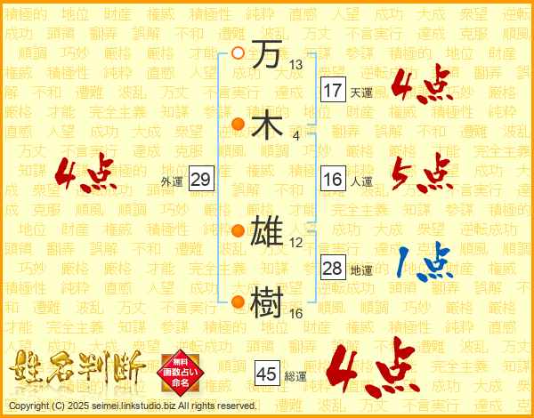万木雄樹さんの天運は17画の4点!