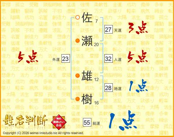 佐瀬雄樹さんの天運は27画の3点!