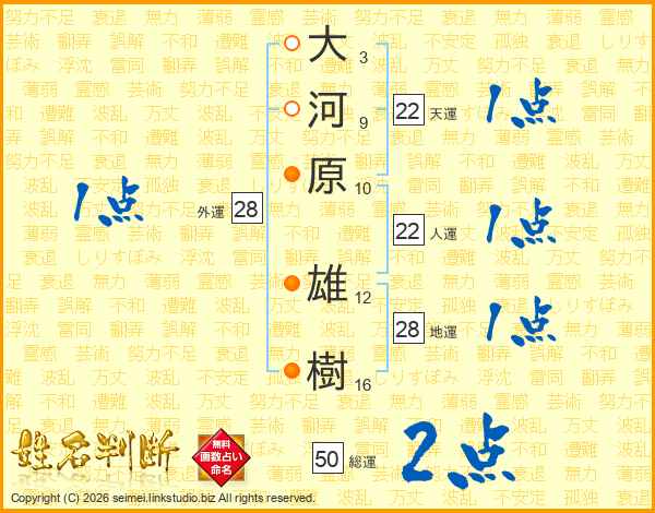 大河原雄樹さんの天運は22画の1点!