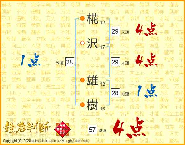 椛沢雄樹さんの総運は57画の4点!
