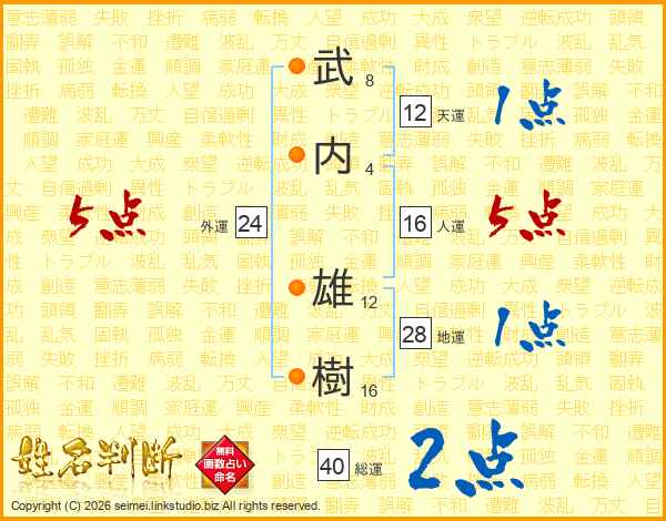 武内雄樹さんの総運は40画の2点!