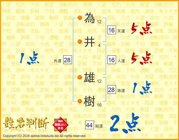 為井雄樹さんの人運は16画の5点!