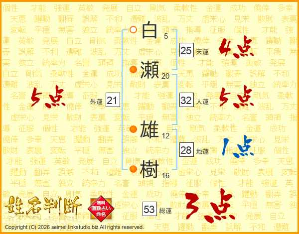白瀬雄樹さんの総運は53画の3点!