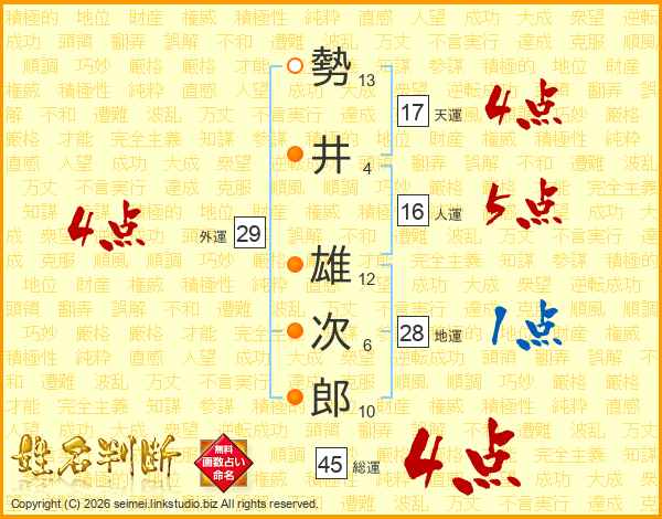 勢(13画)井(4画) 雄(12画)次(6画)郎(10画)