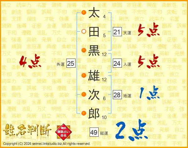 太田黒雄次郎さんの人運は24画の5点!