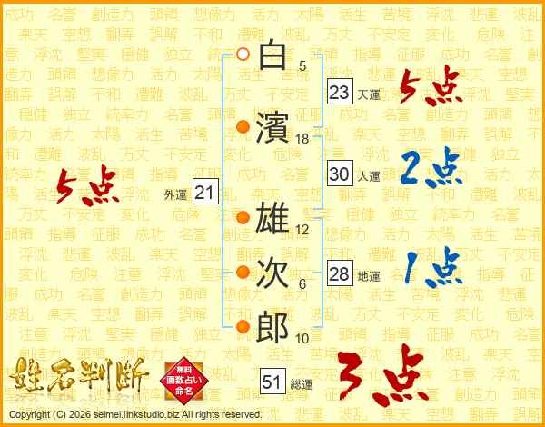 白濱雄次郎さんの総運は51画の3点!