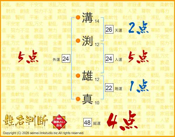 溝渕雄真さんの総運は48画の4点!
