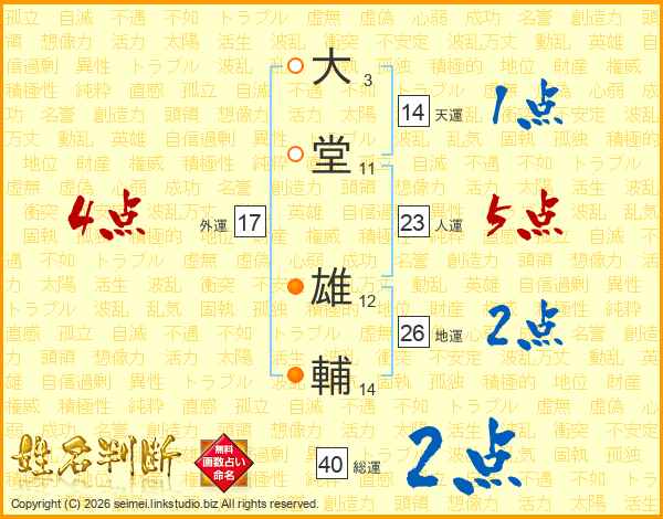 大堂雄輔さんの地運は26画の2点!