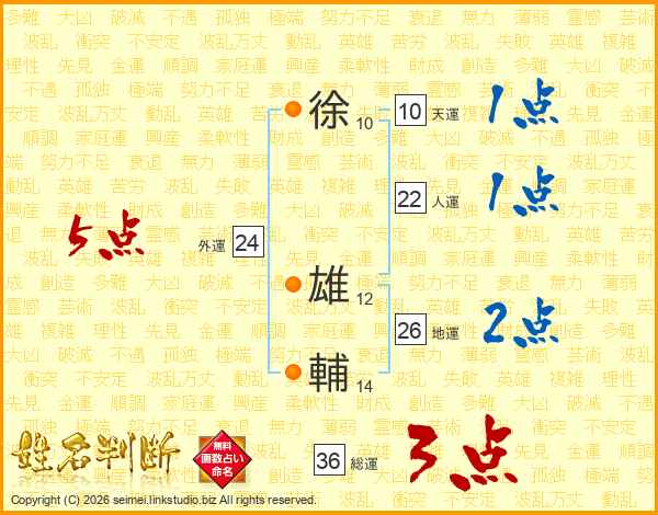 徐雄輔さんの地運は26画の2点!