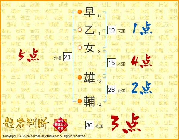 早乙女雄輔さんの総運は36画の3点!