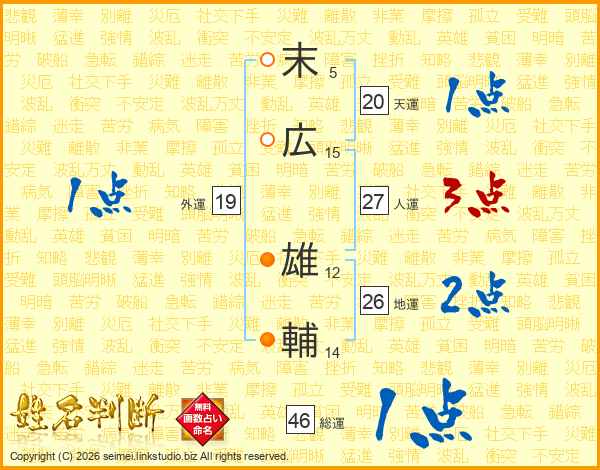 末広雄輔さんの総運は46画の1点!