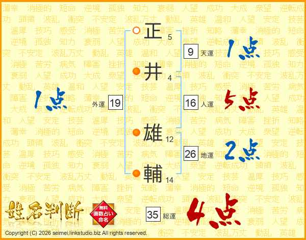 正井雄輔さんの総運は35画の4点!