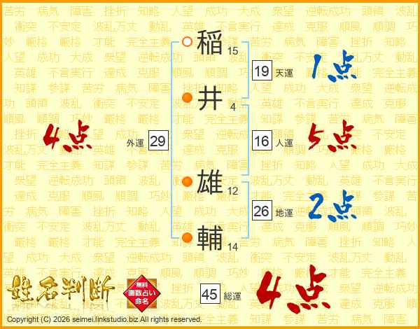 稲井雄輔さんの総運は45画の4点!