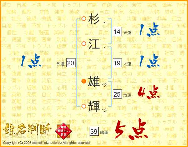 杉江雄輝さんの総運は39画の5点!