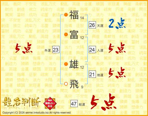 福富雄飛さんの総運は47画の5点!
