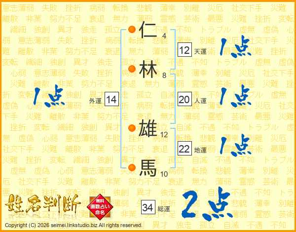 仁林雄馬さんの人運は20画の1点!