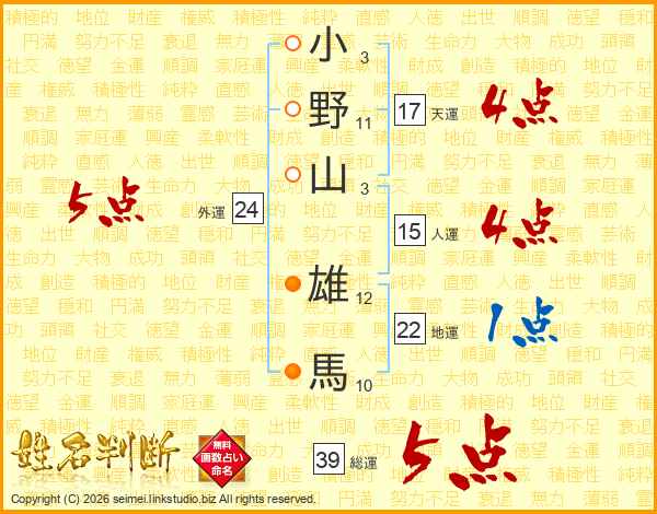 小野山雄馬さんの総運は39画の5点!