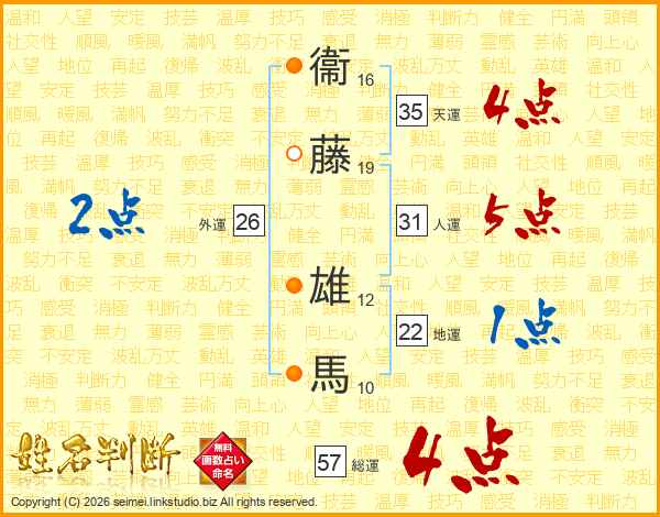 衞藤雄馬さんの総運は57画の4点!